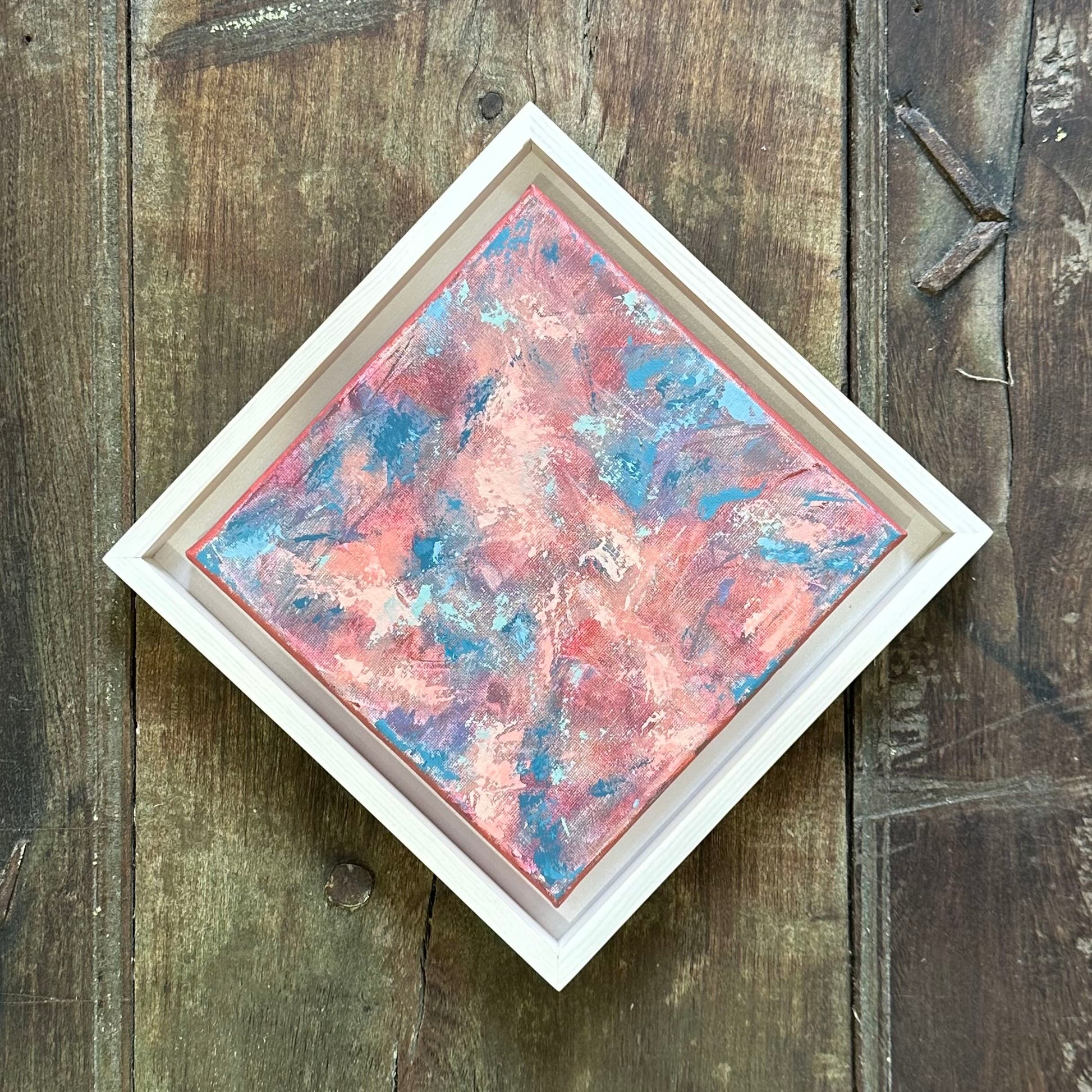 8x8 in | Acrylic on Canvas | 2025 | Framed in White-Washed Pine Wood Float Frame