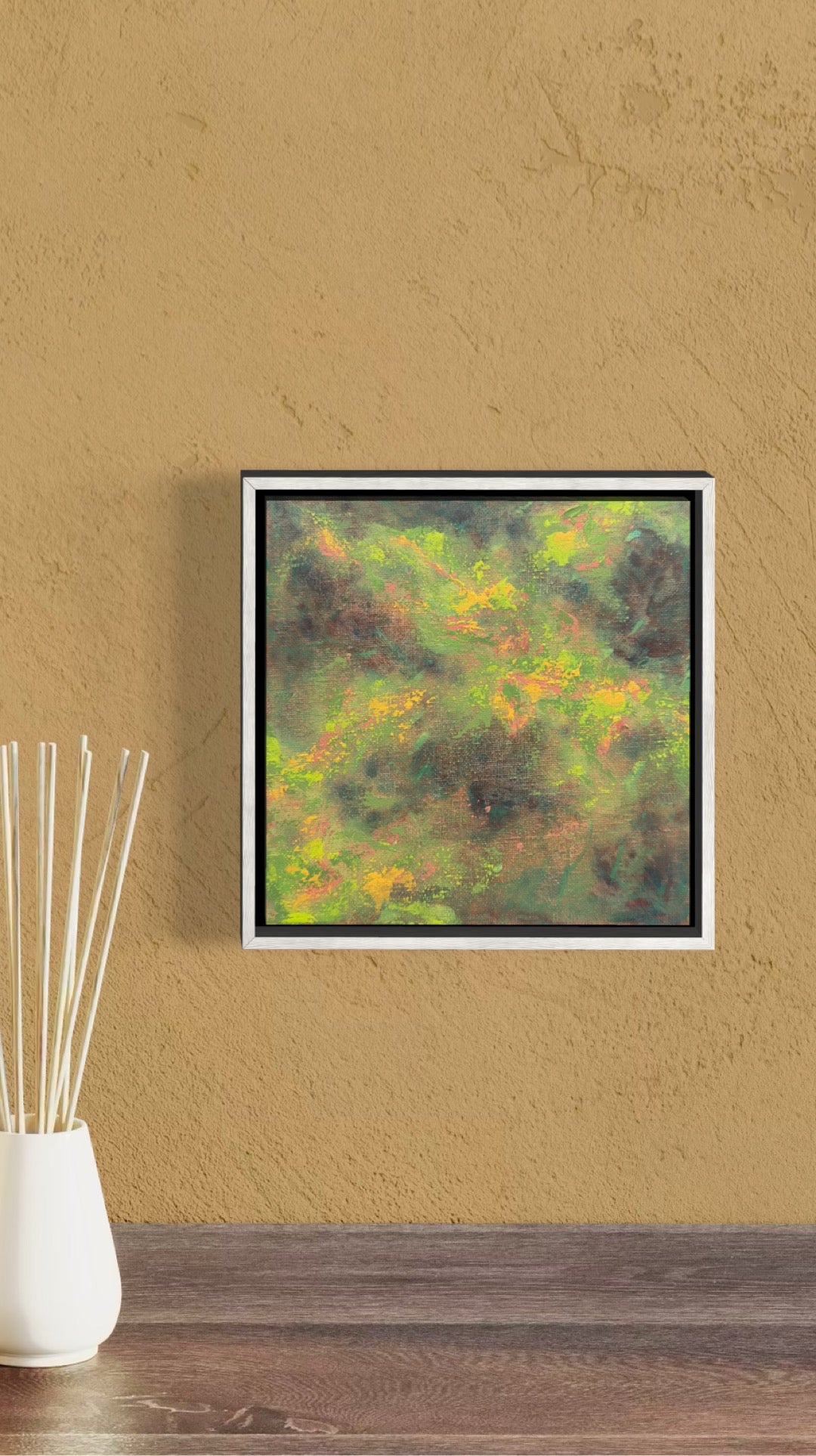 8x8 in | Acrylic on Canvas | 2025 | Framed in White-Washed Pine Wood Float Frame