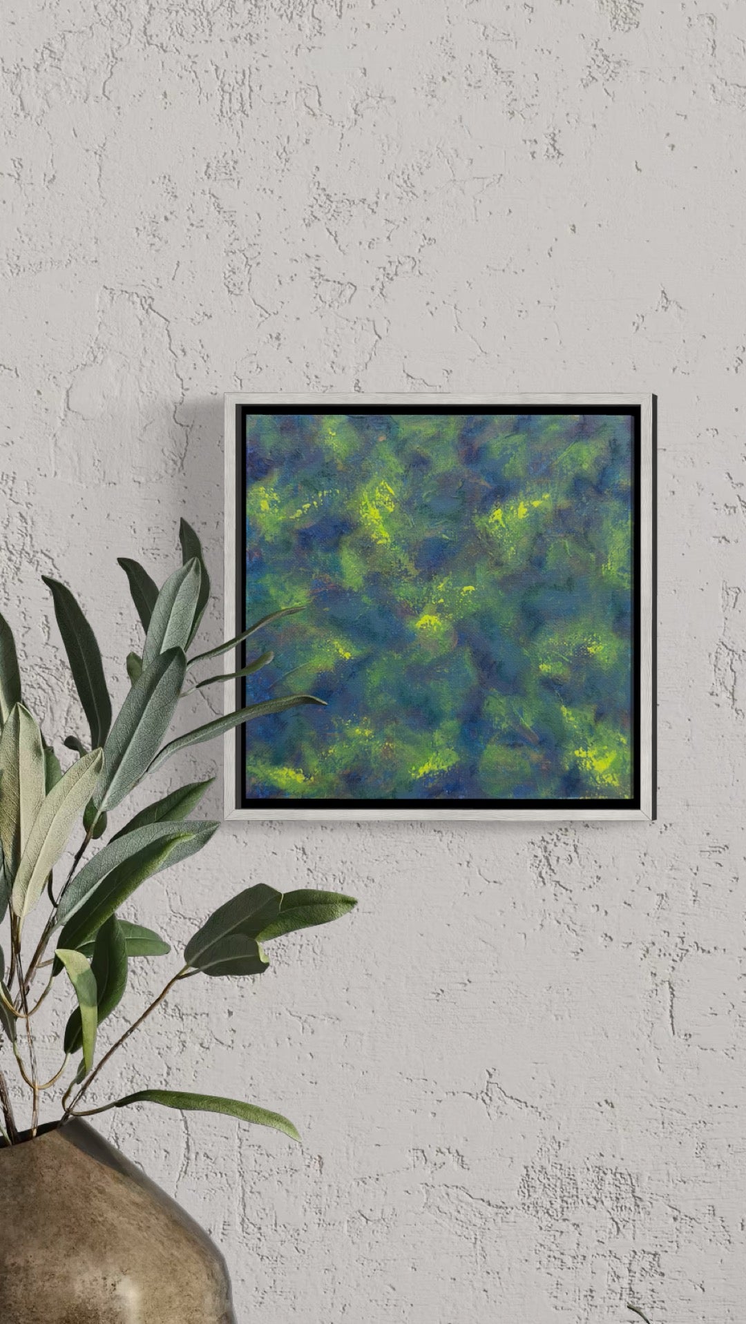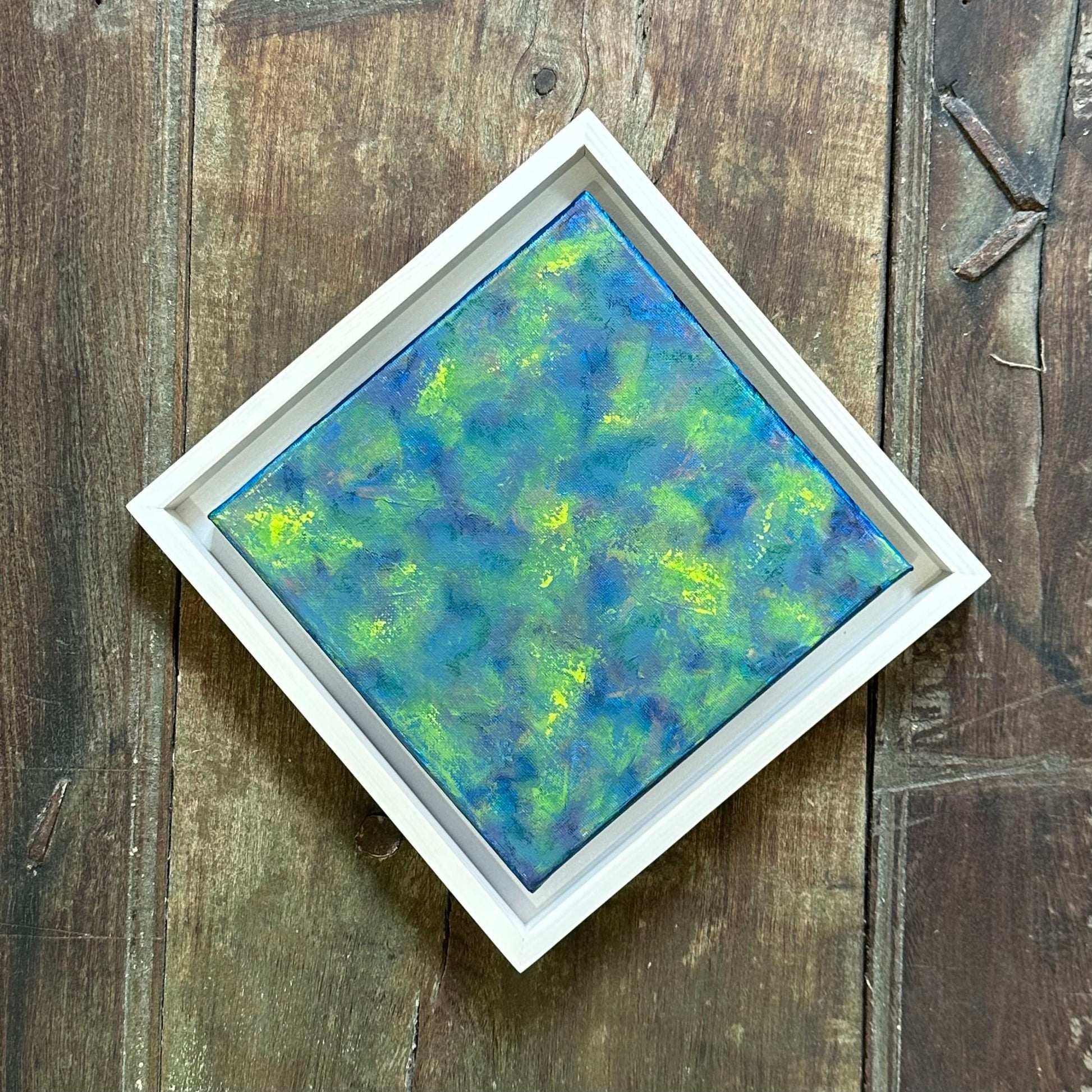 8x8 in | Acrylic on Canvas | 2025 | Framed in White-Washed Pine Wood Float Frame