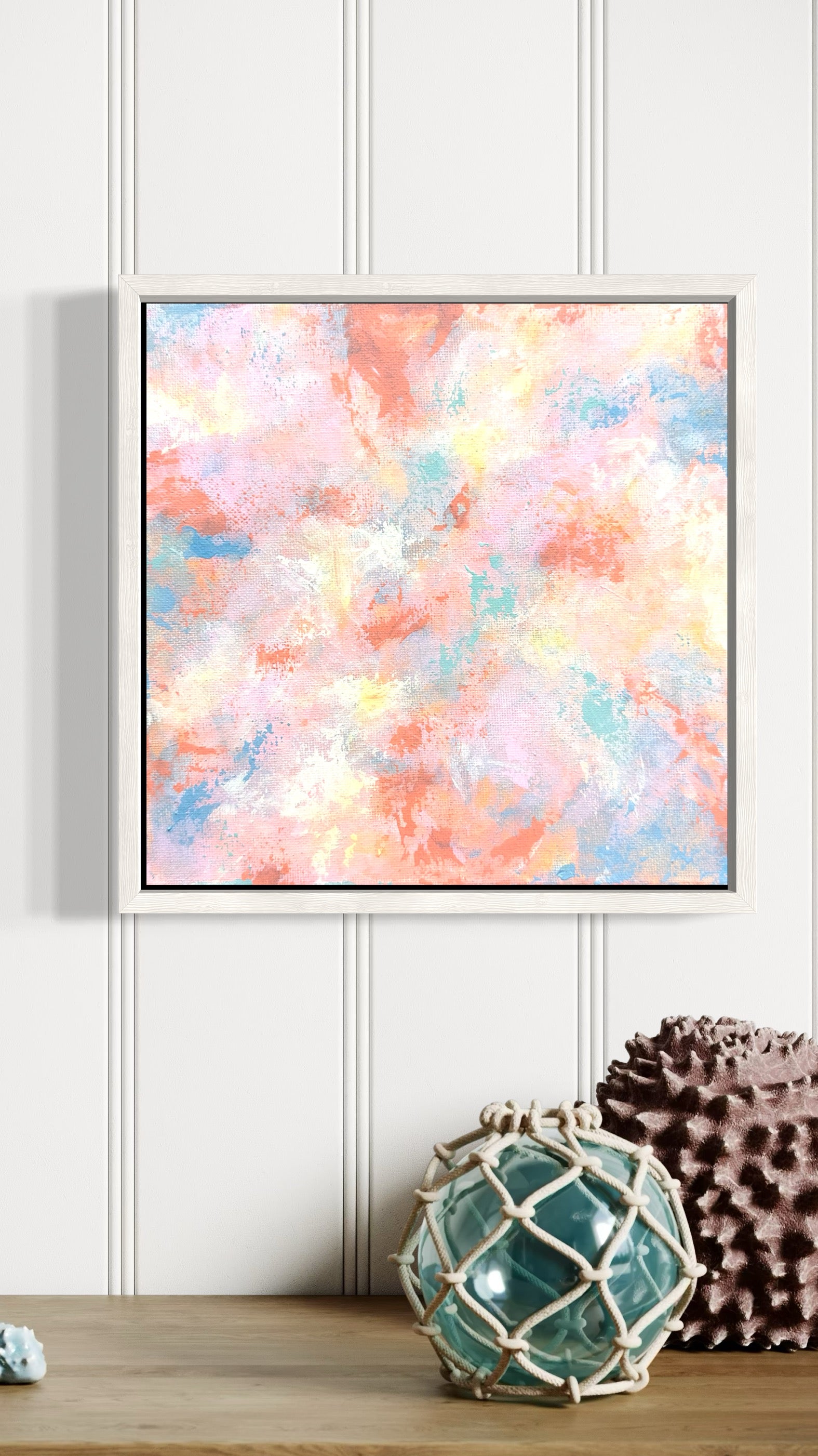 Soft layers of peach, lemon, salmon pink, and turquoise unfold in gentle harmony,