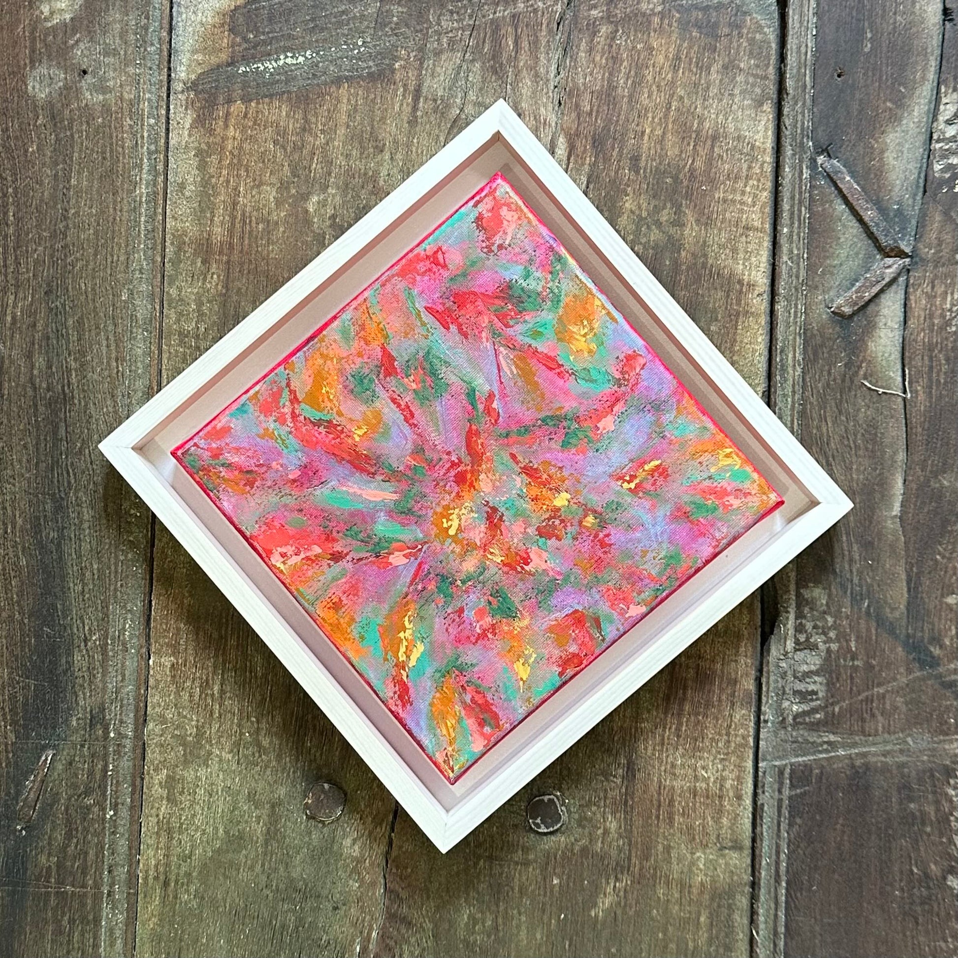 8x8 in | Acrylic on Canvas | 2025 | Framed in White-Washed Pine Wood Float Frame